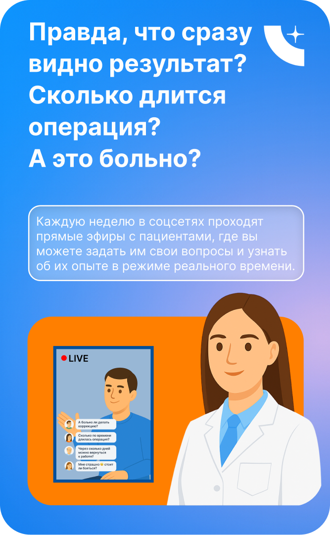 Проводим прямые эфиры а вы задаете вопросы в реальном времени тем, кто уже решился на операцию!